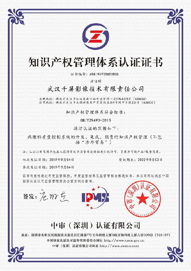 熱烈祝賀武漢千屏影像技術(shù)有限責(zé)任公司于2019年9月獲得知識(shí)產(chǎn)權(quán)貫標(biāo)認(rèn)證證書(shū),公司在知識(shí)產(chǎn)權(quán)管理體系的建立、實(shí)施工作中取得階段性成果,意味著公司知識(shí)產(chǎn)權(quán)的規(guī)范進(jìn)入常態(tài)化。