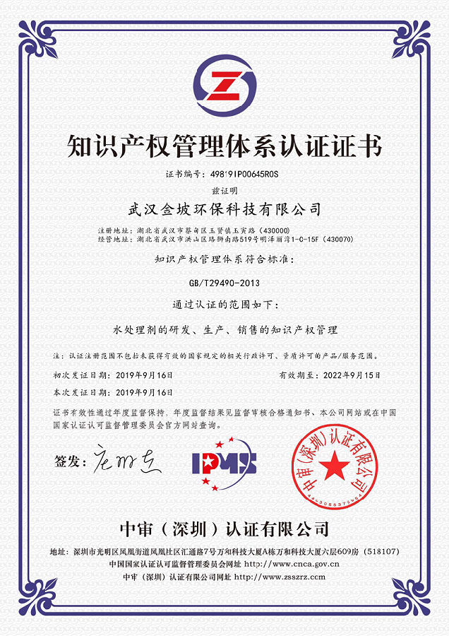 熱烈祝賀武漢金坡環(huán)??萍加邢薰居?019年9月獲得知識產權貫標認證證書,這意味著武漢金坡環(huán)??萍加邢薰驹谥R產權領域獲得到重要認可,在知識產權方面得到進一步規(guī)范和在綜合競爭力得到進一步提升。